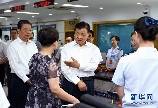 7月22日至24日,中共中央政治局常委、中央書記處書記劉云山在甘肅蘭州調研。這是7月23日,劉云山在蘭州城關區地方稅務一局調研“兩學一做”學習教育情況。 新華社記者 饒愛民 攝